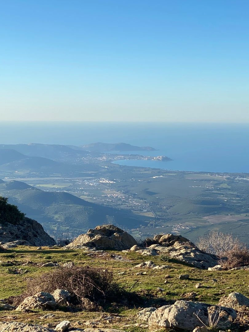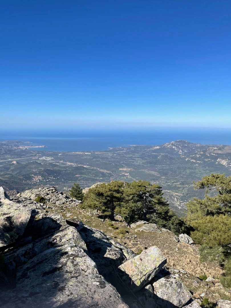 Au sommet, les deux cimes dévoilent un panorama spectaculaire, digne des plus hauts reliefs corses. La descente s’effectue par le même itinéraire. Les amateurs de VTT peuvent également rejoindre une altitude d’environ 700 mètres par un ancien chemin forestier, offrant ensuite une belle descente vers la vallée.